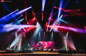Scéna byla kombinací designu Kryštof ze strahovského koncertu a samozřejmě klasického světelného setupu pro ostatní kapely, takže se na místě sešlo přes 40 spotů Robe BMFL, přes 60 led wahsů Robe Spiider, téměř stovka dalších světel jako Robe 700, Robe Pointe, Robe CycBar a samozřejmě follow spot system Robospot a Lightmaster.